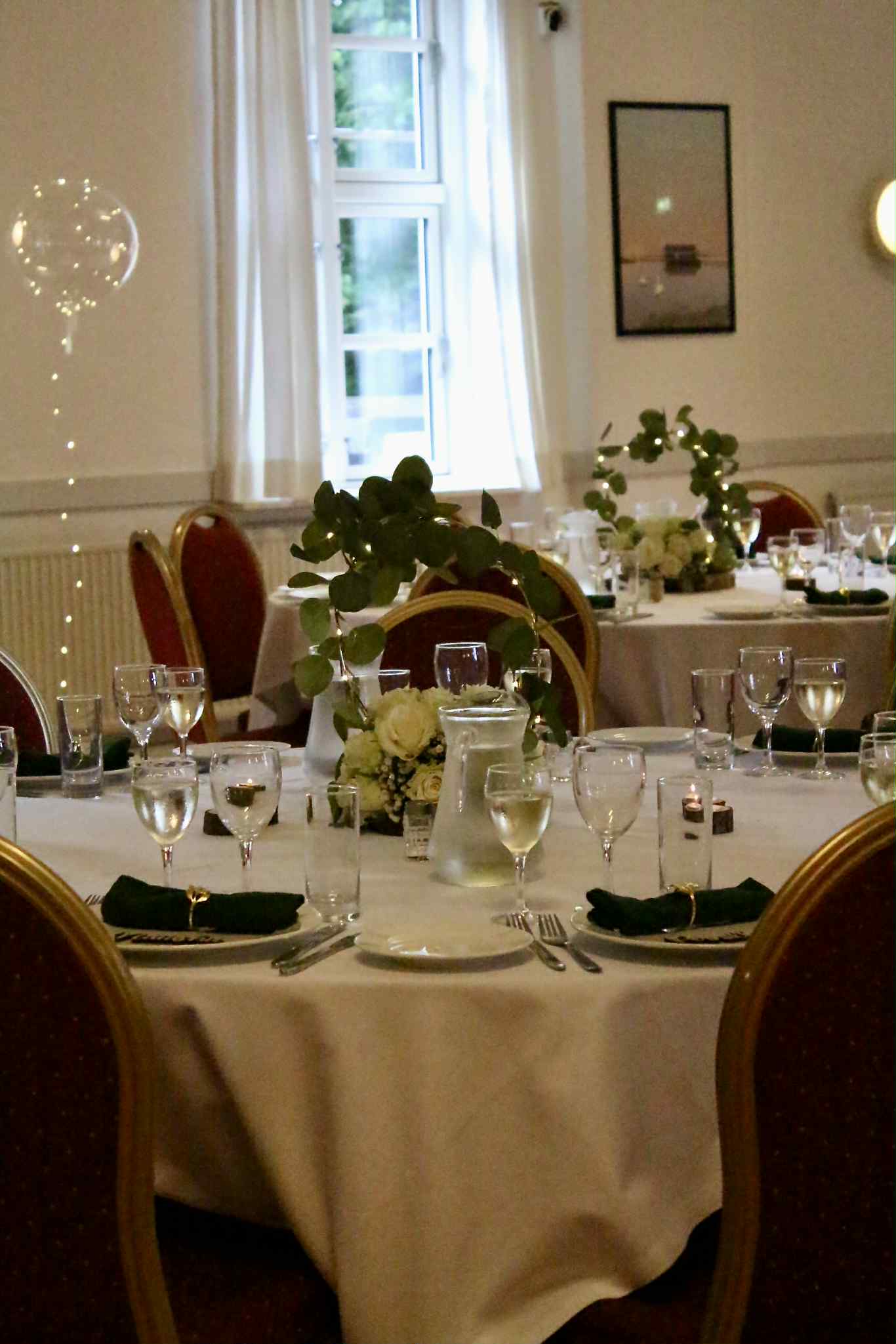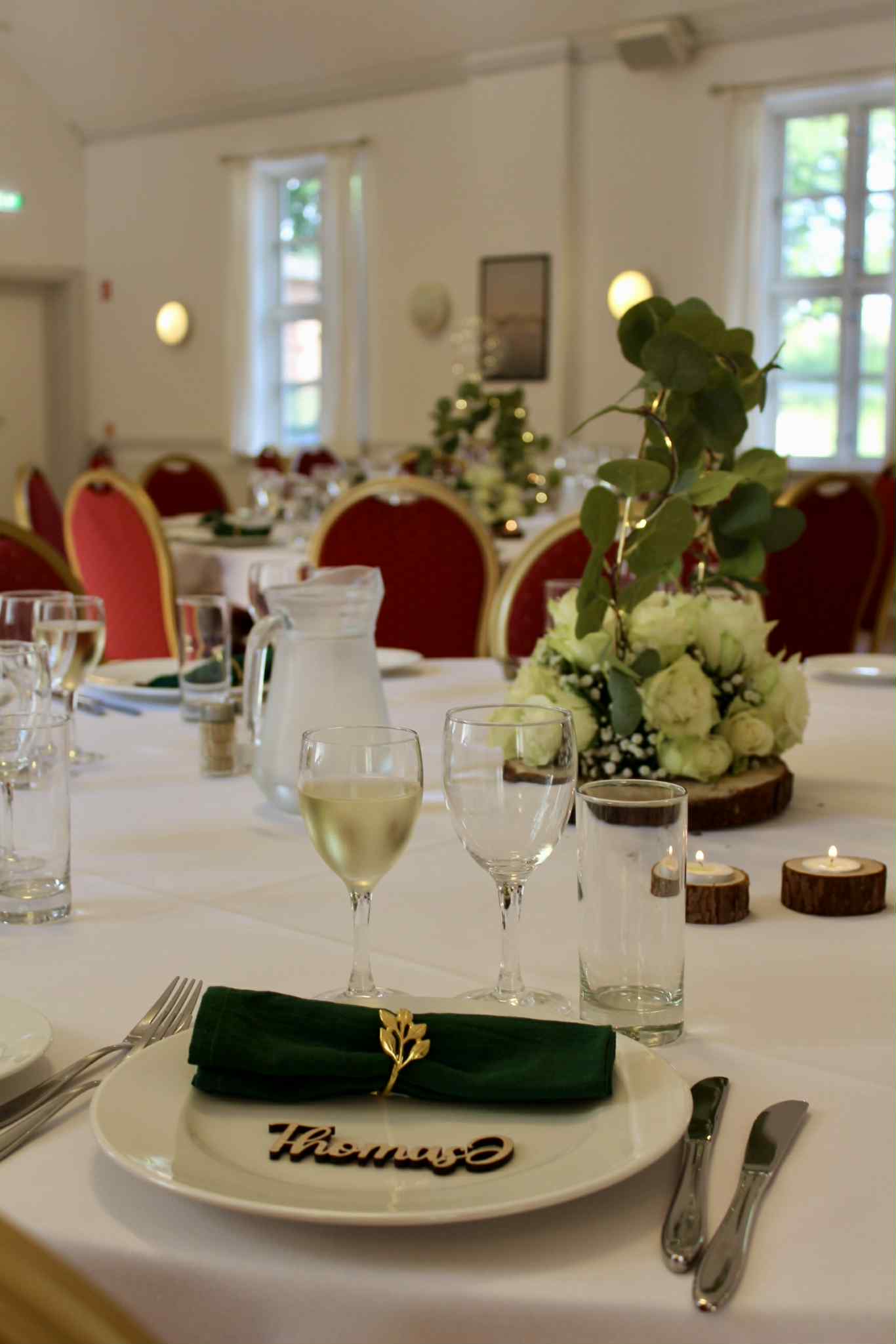- Fuld fleksibilitet: Vi tilbyder alt fra komplet bordopdækning og dekoration til mulighed for selv at sætte dit personlige præg på lokalet.